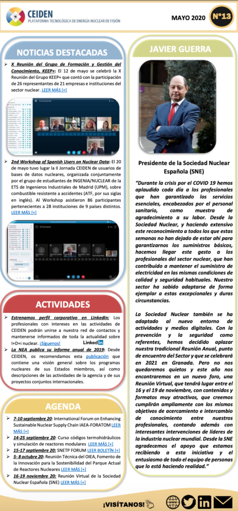 Publicación del boletín Nº13 de CEIDEN Jun 1, 2020 | Boletines, Destacado, Sin categoría Se ha publicado el boletín Nº13 de CEIDEN correspondiente al mes de mayo, al que podéis acceder a través del siguiente enlace.
